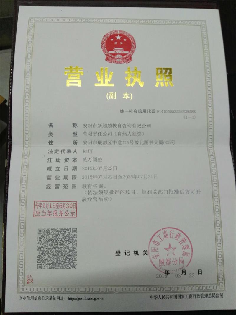 安陽(yáng)市新超越教育咨詢(xún)有限公司,是教師招教培訓(xùn)的文化教育培訓(xùn)機(jī)構(gòu)。她坐落在甲骨文的發(fā)現(xiàn)地,周易的故鄉(xiāng),岳飛的故里,紅旗渠精神的搖籃------河南安陽(yáng)。為了民族教育的振興,為了安陽(yáng)三千年文化的傳承,她努力打造著屬于豫北本土的職業(yè)培訓(xùn)教育!